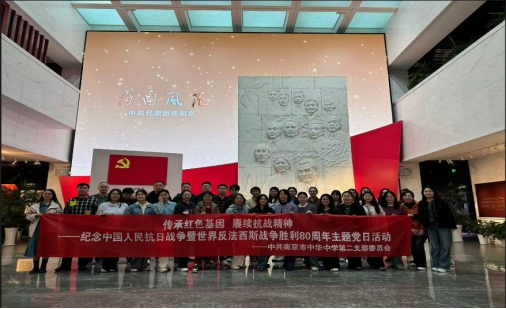 为纪念中国人民抗日战争暨世界反法西斯战争胜利80周年,弘扬爱国主义精神,激励党员不忘初心、牢记使命,10月29日,中共南京市中华中学第二支部委员会开展“传承红色基因,赓续抗战精神”主题党日活动,大家走进梅园新村纪念馆,参观“中共代表团在南京史料陈列展”和“纪念中国人民抗日战争胜利80周年党的隐蔽战线主题展”。