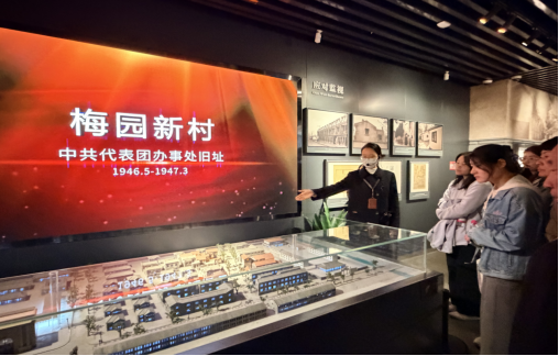 在馆内,大家瞻仰革命先烈,聆听讲解,重温中共代表团在险恶环境中斗争到底的光辉历程。