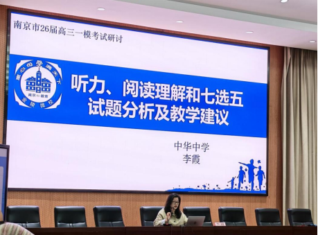 3月30日上午,南京市高中英语教研活动在我校兴隆校区顺利举行。本次活动聚焦刚刚结束的南京、盐城高三英语第一次模拟考试,吸引了全市高三英语教师积极参与。通过观摩研讨课与专题讲座,与会教师围绕一模反映出的教学问题与备考策略展开了深入交流。