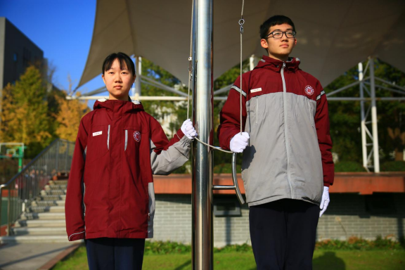 首先给大家介绍今天的光荣升旗手:他们均来自高二(17)班。