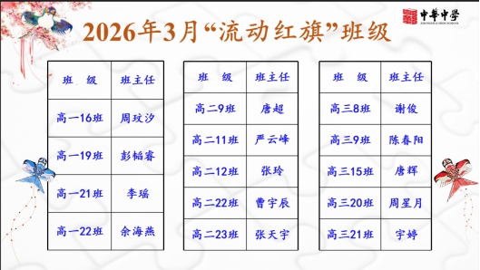 下面宣读获得3月流动红旗的班级,获得流动红旗的班级有: